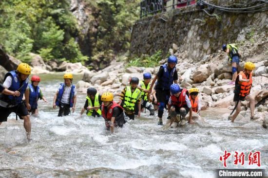 Tourists go river trekking. (Photo/Yang Huafeng)