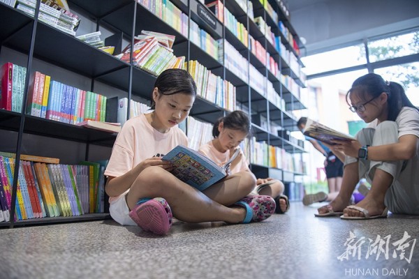 The photos, taken on July 30, show children and their parents read at the Lezhi Bookstore in Tianxin District, Changsha. During the summer vacation, many children accompanied by their parents come to the bookstore to enrich their vacation and improve their knowledge. (Photo/Gu Pengbo, Hunan Daily)