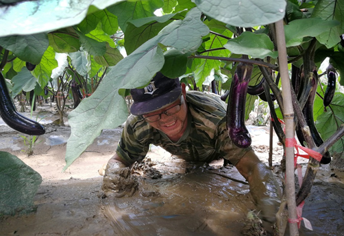The photo, taken on June 25, shows a villager desilts the farm and rights the crops at Xima Township, Hongjiang City. The township’s 1,032 mu (nearly 69 ha.) of farm was flooded on June 24. The local people carried out post-flood recovery to resume production and reduce disaster-caused loss. (Photo/Yang Xijian, Yi Huijiao)