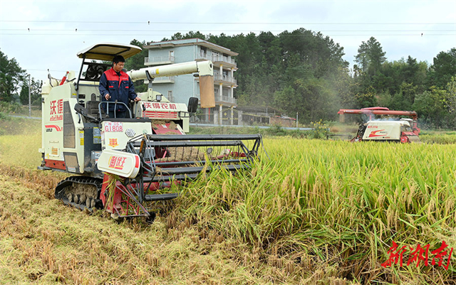 On October 22, farmers drive reapers to harvest late-season rice in Qili Village, Huagu Neighborhood, Dongkou County. As Shuangjiang, or the Forest's Descent, approaches, local farmers are busy with the autumn harvest and planting activities. The fields are bustling with activity as they lay the groundwork for winter agricultural production. (Photo/Teng Zhizhong)
