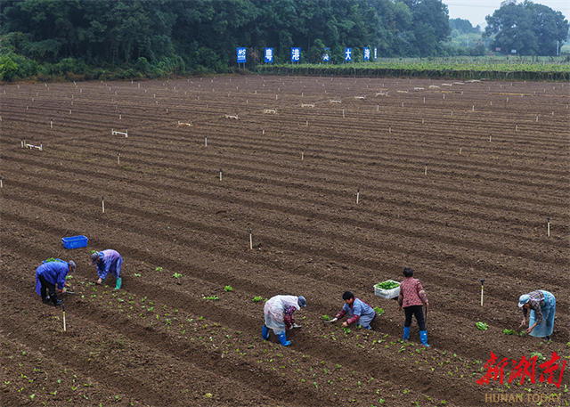 On October 22, vegetable farmers transplant seedlings in the fields at an agricultural plantation in Xiachecun Village, Jinping Town, Jiahe County. As Shuangjiang, or the Forest's Descent, approaches, local farmers are busy with the autumn harvest and planting activities. The fields are bustling with activity as they lay the groundwork for winter agricultural production. (Photo/Huang Chuntao)