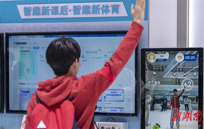A visitor experiences motion sensing games at the 2025 China New Media Technology Exhibition (CMTE) at the Hunan International Convention and Exhibition Center (Mango Hall) on November 13. The exhibition is ongoing in Changsha, focusing on technology empowering the media throughout its entire workflow and across all aspects. It featured three core sections—"New Ecosystem of Intelligent Media," "New Application of Smart Media Technologies," and "New Consumption of Digital Cultural Innovation." The event aims to create a platform to showcase the achievements in technological innovations empowering systematic transformation of mainstream media, and to facilitate technology transactions and industrial collaboration. (Photo/Tong Zhenxi and Liu Shiqi, Hunan Daily)