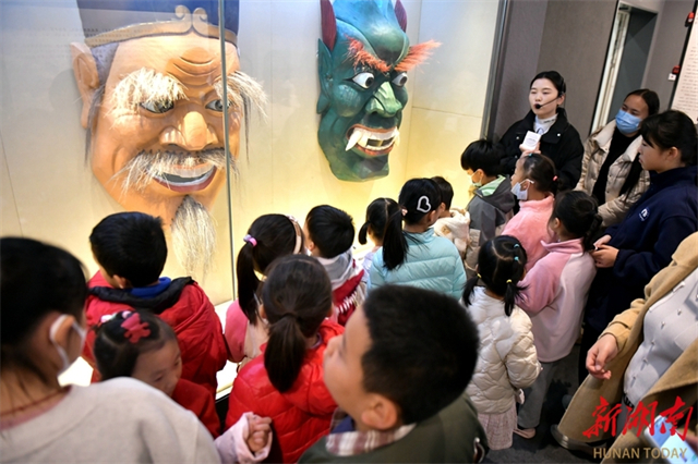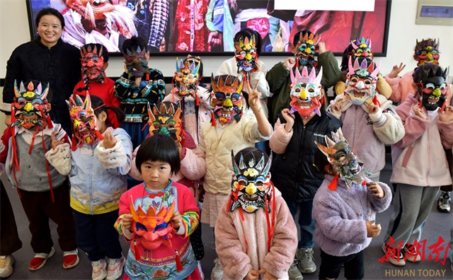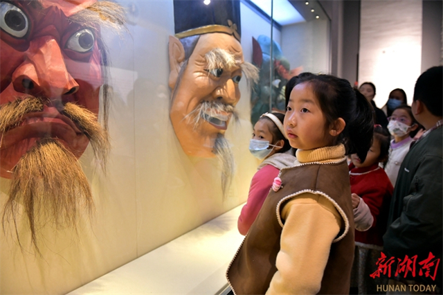 On November 29, visitors watched Nuo masks at the Xiangxi Prefecture Museum (Intangible Cultural Heritage Hall). The museum hosted a Nuo mask-themed parent-child event, where families learned about Nuo culture, painted personalized Nuo masks, and participated in creative fashion shows. These activities allowed participants to experience the ancient charm of Nuo culture while strengthening their sense of identity and pride in local heritage. (Photo/Yao Fang and Yang Yanping)