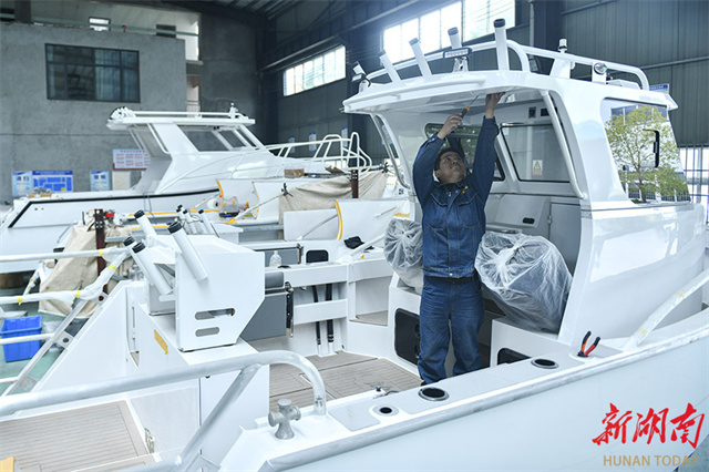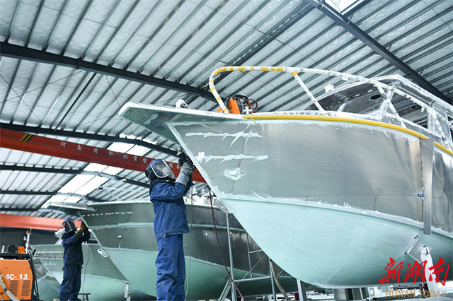 On December 16, workers were busy fulfilling ship orders at the workshop of a ship equipment engineering company in Loudi Economic and Technological Development Zone. As the year draws to a close, the company's workforce is intensifying efforts to fulfill orders and achieve annual production targets. Its luxury yachts are exported to European and American countries, demonstrating robust export strength. (Photo/Wu Yonghua)