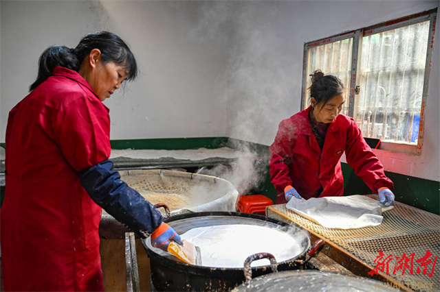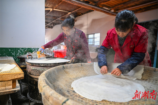 The photo, taken on January 5, shows villagers making buckwheat bean curd sheets in a workshop at Baimamiao Village, Yanjing Town, Lixian County. Every winter, locals have the tradition to make buckwheat bean curd sheets, which serve both as daily fare and as a treat for guests. As the Spring Festival approaches, numerous workshops and villagers have begun producing buckwheat bean curd sheets, turning this smooth, chewy, and nutritious local specialty into the warmest festive flavor in people's memories. Currently handmade buckwheat bean curd sheets not only evoke a sense of nostalgia, but have also developed into a distinctive industry that boosts farmers' income. (Photo/Guo Lilaing, Hunan Daily)