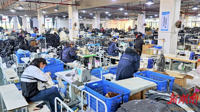 On January 6, workers are busy producing garments to fulfill export orders at a garment production park in the Xiangnan Textile Industrial Base, Changning City, Hengyang. As one of Hunan's 100 key industrial projects, the base has established an entire industrial chain cluster spanning from cotton spinning to garment production. It serves as a demonstration project in the Industrial Transfer Demonstration Zone in Southern and Western Hunan. Currently, the enterprises in the base are operating at full capacity to boost production, fulfill orders, and expand capacity, striving to achieve a good start in the year of 2026. (Photo/Liu Donghua)