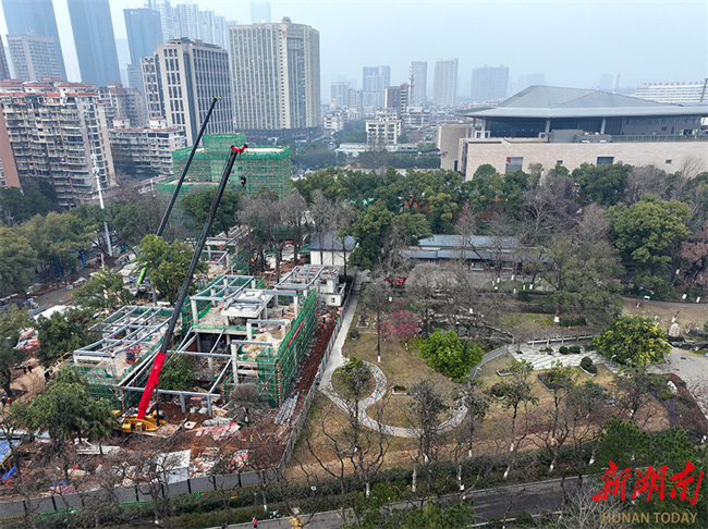 On January 18, the Hunan Martyrs Park West Square Cultural Tourism Project—China's first "museum-park integration" initiative—has been progressing steadily. Launched in June last year, the 29,000-square-meter project has created a passage connecting the Hunan Museum with the Hunan Martyrs Park. Construction of new buildings, square paving, and landscaping engineering is proceeding simultaneously. The integrated square is scheduled for completion by the end of this month, with the entire project slated for full completion and operation by April 20, achieving seamless integration of cultural and natural landscapes. (Photo/Zhao Chi, Hunan Daily)