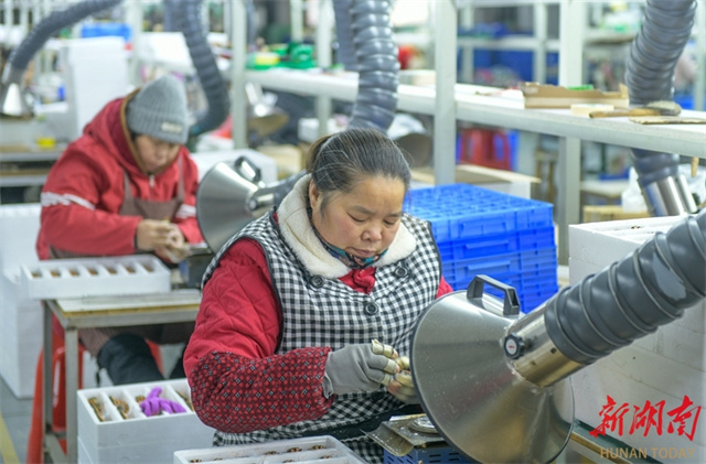 The photo shows workers assembling small motors on the production line at a company in Daoxian County. In recent years, the county authority has vigorously developed its small electric motor manufacturing industry, establishing stable partnerships with domestic and international manufacturers to achieve robust production and sales. (Photo/Jiang Keqing)