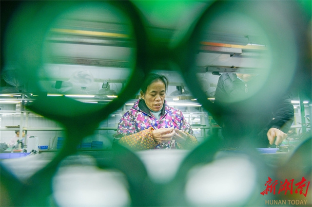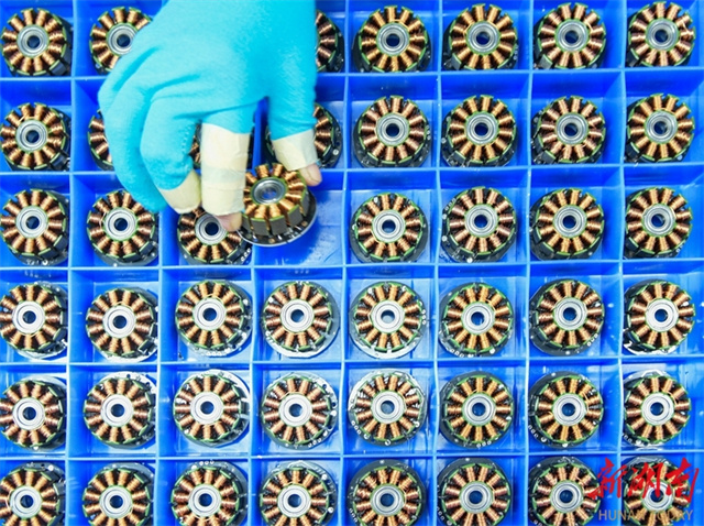 The photo shows a worker assembling small motors on the production line at a company in Daoxian County. In recent years, the county authority has vigorously developed its small electric motor manufacturing industry, establishing stable partnerships with domestic and international manufacturers to achieve robust production and sales. (Photo/Jiang Keqing)