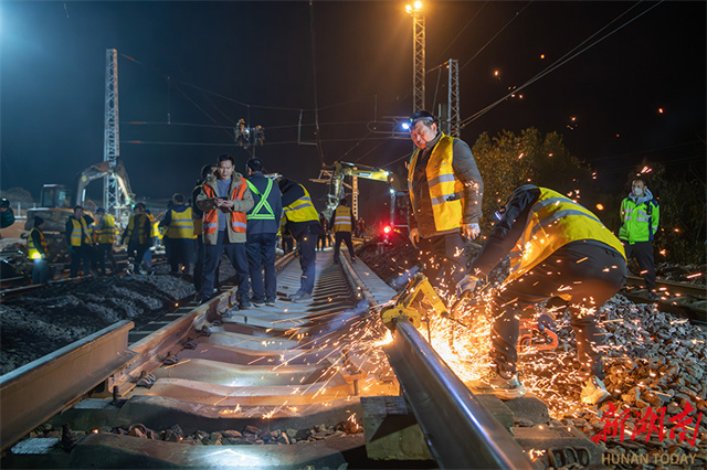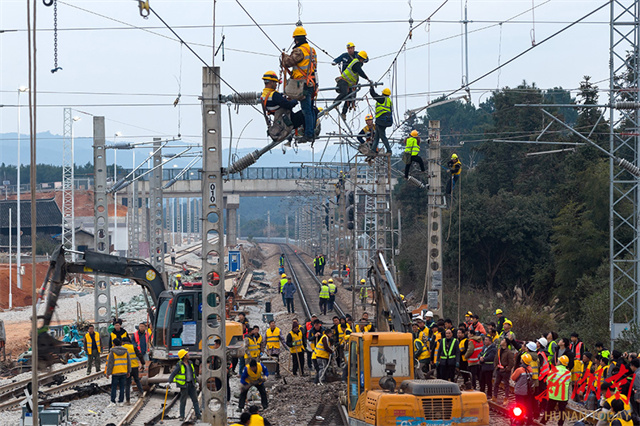 A project to connect the Huaihua International Land Port-Huitong Port Dedicated Railway Line with Lianshan Station along the Jiaozuo-Liuzhou Railway officially commenced on January 24. Coordinated by the China Railway Guangzhou Group Co., Ltd. and constructed by the China Railway 25th Bureau Group Co., Ltd., the project is scheduled to be completed on January 31. Upon completion, the project will add one arrival-departure track, one siding track, and a dedicated freight yard. All this will significantly enhance the cargo handling efficiency of containers and packaged goods, enabling seamless connectivity between Lianshan Industrial Park and the national railway network. (Photo/Zhang Lei)