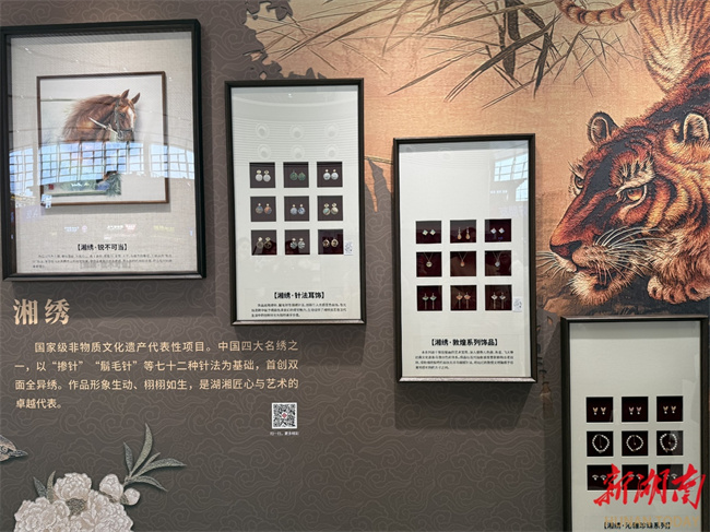 Taking the "urban gateway + transportation hub" as its platform, the exhibition showcases nearly 20 representative intangible cultural heritage items including Hunan embroidery, Miao embroidery, Miao painting, Dong brocade, Tujia brocade, Changsha Tongguan Kiln ceramics, black tea processing techniques, and Nvshu (women's script) customs. Through text, artifacts, and immersive displays that blend modern visual language with traditional aesthetics, the exhibition vividly showcases the artistic beauty and cultural meaning of Hunan's intangible cultural heritage. The show aims to create a cultural space within the bustling transportation hub where travelers can pause, engage, and feel a connection, immersing themselves in Hunan culture.