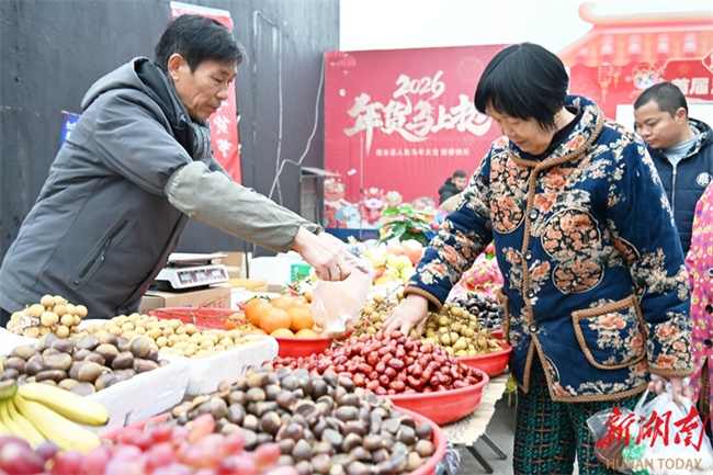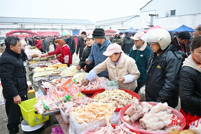 The photo, taken on February 4, shows villagers shopping for New Year goods during a shopping festival in Yangjiadang Village, Rudong Town, Lixian County. As the Spring Festival approaches, the town hosted its inaugural Hunan-Hubei Border Area New Year Goods Festival and a mass performance event. By leveraging cultural activities to stimulate the trade of New Year goods, the event attracted numerous villagers from both the local area and neighboring Nanping Town in Gong'an County, Hubei Province. (Photo/Bai Yipu and Wang Ming)