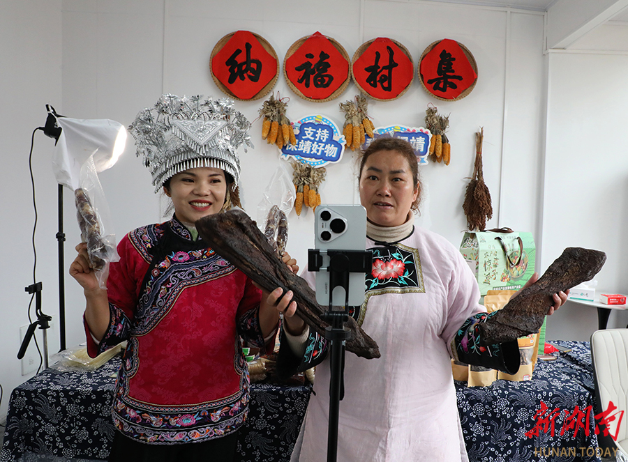 With the Chinese New Year approaching, the county authority organized a Spring Festival market and invited live-streamers to host livestream sessions, promoting traditional New Year goods such as perserved meat, sausages, and ciba (a delicious round-shaped glutinous rice cake). This initiative aimed to stimulate the festive economy and boost farmers' income. (Photo/Yu Caihua)