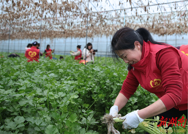 The photo, taken on February 27, shows members of a volunteer association in Guidong County assisting in harvesting vegetables at an agriculture company. Their participation helped ensure timely agro-product supply to the Guangdong-Hong Kong-Macao Greater Bay Area, and contributed to local rural revitalization. (Photo/Deng Renxiang)