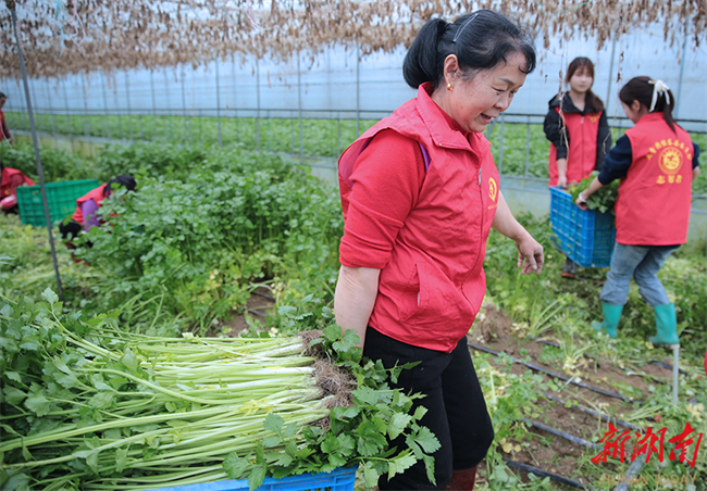 association in Guidong County assisting in harvesting vegetables at an
