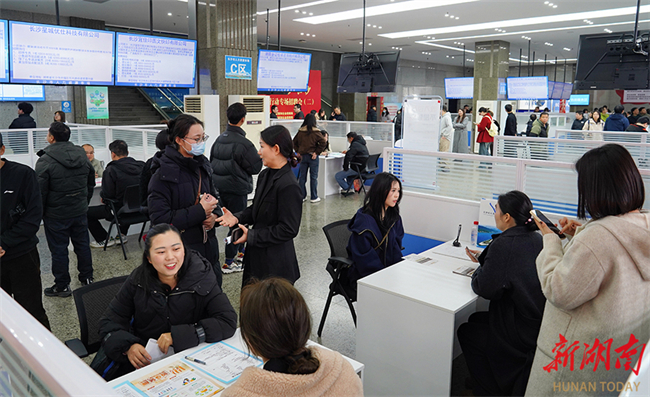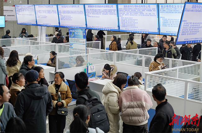 On February 27, the 2026 Spring Breeze Campaign Job Fair, hosted by the Changsha Municipal Human Resources and Social Security Bureau, was held at the Changsha Human Resources Market. The job fair brought together 46 high-quality enterprises, offering 2,630 job openings across such sectors as manufacturing, services, and real estate. The initiative helped establish an efficient matchmaking platform for job seekers of various backgrounds. (Photo/Xu Xing, Hunan Daily)