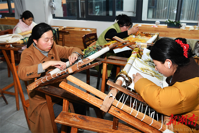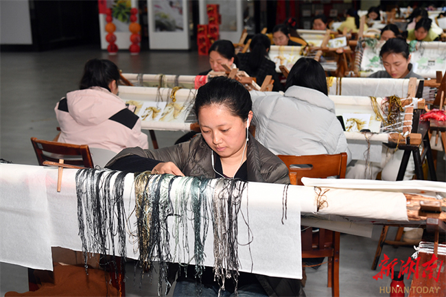 On February 28, embroiderers were busy fulfilling Spring Festival orders at a workshop of the Hunan Xiang Embroidery Research Institute. After the Spring Festival holiday, the institute has resumed full operations, dedicating its efforts to producing business gifts, cultural and creative products, and new Chinese-style apparel. Last year, its products were showcased at 37 domestic and international exhibitions, introducing 45 new Chinese-style Xiang embroidery garments. Multiple works won awards and were selected as the intangible cultural heritage licensed merchandise for the 15th National Games. (Photo/Tian Chao, Hunan Daily)