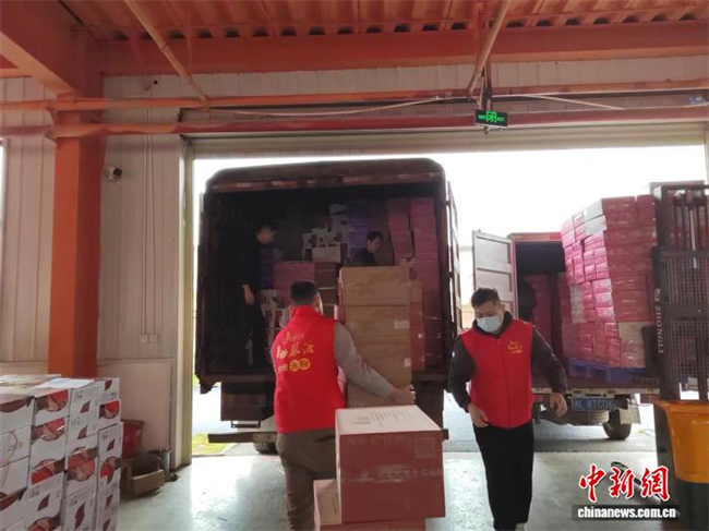 Workers load fish rice noodles onto trucks at the warehouse of an instant fish rice noodles company in Qifengdu Town, Suxian District, Chenzhou, on February 27. (Photo/Ou Haikun)