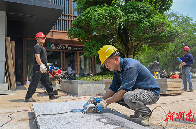 On April 9, workers were busy constructing the "museum-park integration" project at the west square of Hunan Martyrs Park. Currently, the "museum-park integration" project linking the Hunan Museum and Hunan Martyrs Park is nearing completion. Launched in last June, the project covers an area of 29,000 square meters, centering on the idea of "museum plus park." The efforts aim to achieve museum-park integrated development through unified construction. The initiative boasts "integration of spaces, resources, and business formats and traffic circulation." The project connects the Hunan Museum with the Hunan Martyrs Park, comprehensively upgrading the facilities to create a seamless transition between cultural and natural landscapes. (Photo/Guo Liliang, Hunan Daily)
