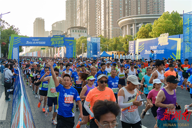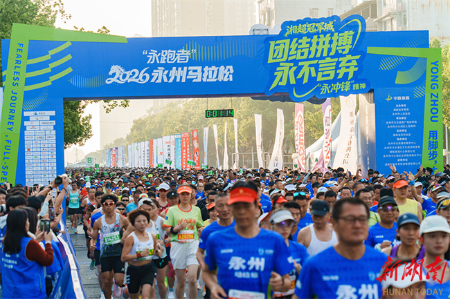 On April 19, the 2026 Yongzhou Marathon kicked off with great enthusiasm in Lengshuitan District, Yongzhou City. Tens of thousands of runners raced along the "one river, two banks" route, passing through city landmarks and intangible cultural heritage performing sites. The event allowed the participants to fully immerse themselves in the urban charm of "New Yongzhou, Wonderful Yongzhou, Beautiful Yongzhou, and Blessed Yongzhou," effectively driving a surge in cultural and tourism consumption. (Photo/Lei Zhongxiang and Jiang Lingzhi)