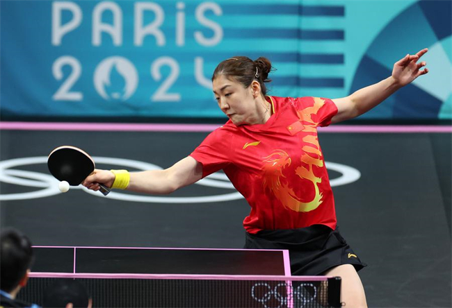 Chen Meng in action during the match against Sun Yingsha on Aug. 3, 2024. (Xinhua/Liu Xu)