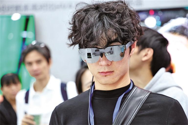 A consumer tries on a pair of smart glasses. (Photo/Xinhua)