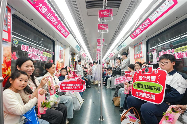 Recently, a spring flower fairy parade took place at a Changsha metro station, officially unveiling the promotional campaign for the 2026 Hunan Ecotourism Festival and the 18th Dawei Mountain Azalea Festival. "Azalea fairies" dressed in elegant attire danced gracefully against a backdrop of a sea of flowers, while the "azalea fairy family" made a stunning appearance with baskets of flowers, presenting a magical, ancient-style fashion show. The "grandma flower fairies group" sang a classic revolutionary song titled "Azaleas" with heartfelt passion and engaged the audience in a lively song-guessing relay game.