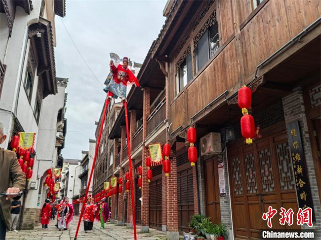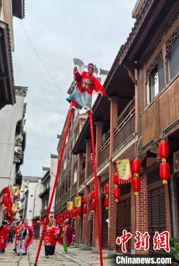 On April 24, Zheng Dajun, a "Prince of Stilts" in Hunan, showcased his skills on five-meter-high stilts during a Changle Taige performance in Miluo City. Foreign photographers were stunned by his performance, exclaiming "Amazing!"