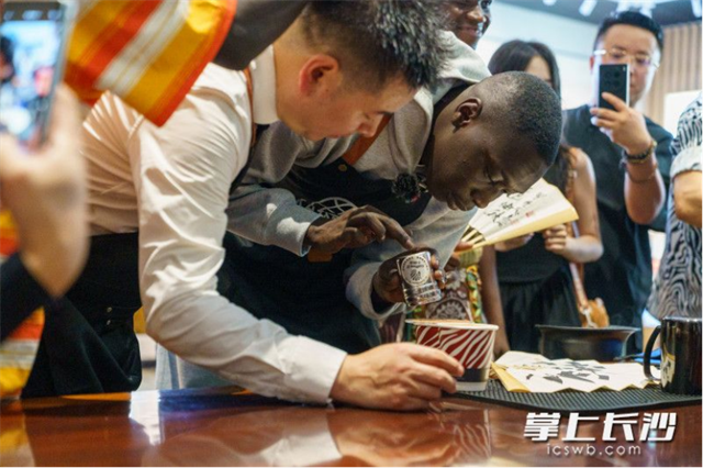 Khaby Lame personally makes a cup of coffee featuring the words "I Love Changsha."