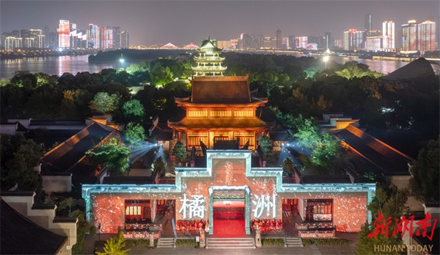 The Jiangtian Muxue Cultural Park opened to the public at the Orange Isle Scenic Area on the evening of November 6. An art performance featuring the park was staged that night, highlighting characters and stories in the Song Dynasty (960-1279). The show is enhanced by technologies that create stunning effects, including sound, light, water, fog, and electricity, making it a new experiential space on Orange Isle. (Photos/Gu Pengbo, Hunan Daily)
