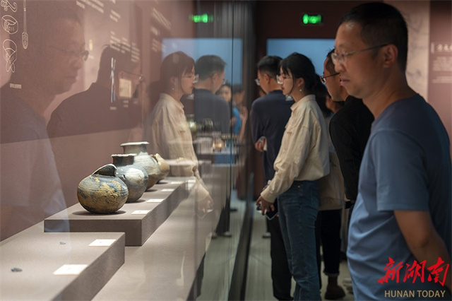 On October 17, the Archaeological Exhibition of the Construction Site at Chaoyang Alley, South of the Former Residence of Jia Yi opened at the museum of Hunan Normal University. The exhibition is themed "The Residence of Jia Yi: A Thousand Years of Cultural Legacy". The archaeological discoveries from the construction site in Chaoyang Alley, located south of the Former Residence of Jia Yi, are being displayed for the first time, showcasing the achievements made during the 2022-2023 period. The exhibition features more than 150 pieces of valuable cultural relics including porcelain, bronze wares, and pottery, showcasing the development changes and life scenes of Changsha City. The exhibition opens to the public free of charge and will last till April 10, 2025. The photo shows a student viewing exhibits dating back to the Song Dynasty (960-1279 AD). (Photo/Gu Pengbo, Hunan Daily)
