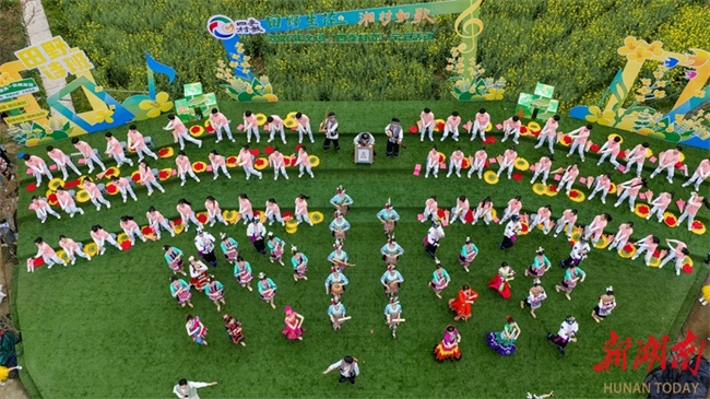 On March 28, the 2026 National Four Seasons Village Gala Demonstration Event kicked off at the Daoxiang Shitian Scenic Area in Baozi Town, Huitong County. Set against the natural backdrop of a vast sea of canola flowers, this immersive cultural event used village songs as the theme, blending agricultural customs, ethnic traditions, and melodies. It vividly showcased the poetic charm and vitality of rural areas in the new era, marking the spring prelude to the national "Four Season Village Gala" initiative. (Photo/Zhang Lei)
