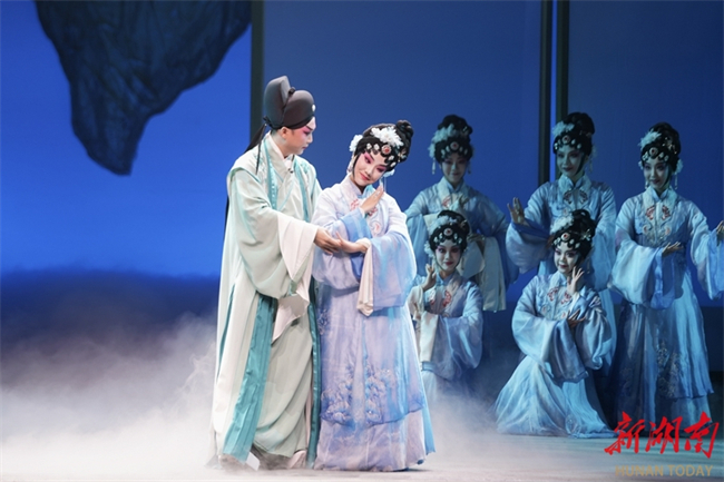 An immersive Kunqu opera show "Xiang Yu, Xiang Kun (An Encounter with Hunan Kunqu Opera)" is staged at the Hunan Kunqu Opera Troupe in Chenzhou on the evening of November 27. This show tells the legendary story about Liu Sheng, an inheritor of Kunqu Opera, who bring back Kunqu art to his hometown to fulfill his teacher's wishes. It presents how Kunqu opera took root and flourished in Hunan, showcasing the unique charm of this traditional art in the new era. (Photo/Gu Pengbo and Liu Jiaxuan, Hunan Daily)