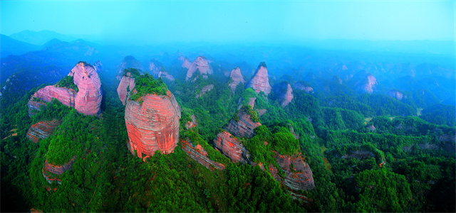 The county government has acted on the principle that lucid waters and lush mountains are invaluable assets and has leveraged its Danxia resources to develop ecological scenic areas such as Wanfo Mountain, Immortal Cave, Qixing Mountain, General Mountain, and Ziyun Mountain.