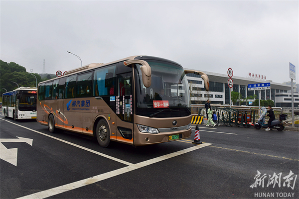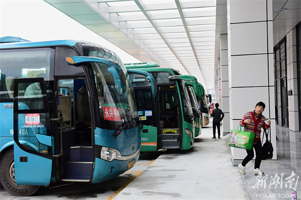 The new Chenzhou Bus Terminal (West Station) opened for a trial operation on May 7, 2023. The station is located at the intersection of 107 National Highway Chenzhou Circle Line and Tongxin Road. It was constructed at the first-class bus passenger terminal standards issued by the Ministry of Transport. With a total area of 77 mu (about 5.13 hectares) and total investment of 220 million CNY, it is a comprehensive transportation hub integrating long-distance passenger transportation, urban bus terminal, and parking lot for taxis and private vehicles. At present, it operates nine inter-provincial, 20 urban-rural, 50 inter-county, and 12 intercity bus lines. The photo shows passengers to get on board of buses at the new Chenzhou Bus Terminal (West Station). (Photo/He Maofeng)
