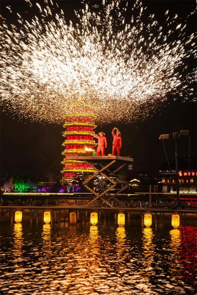 Datiehua, or the molten iron fireworks show.(Photo provided by the official Wechat account of Tongguan Kiln Ancient Town China-chic Paradise)