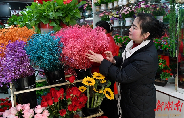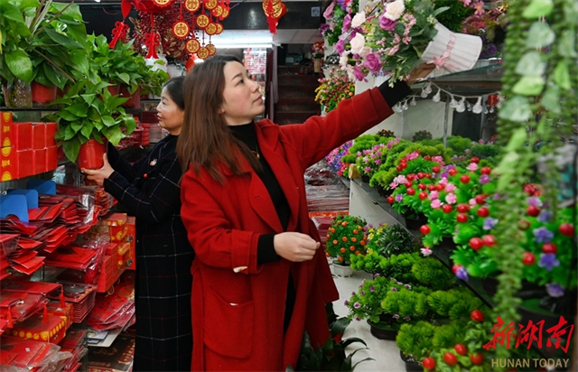 On January 15, residents purchase flowers for the Spring Festival at a flower market in Liaomei Community, Gaosha Town, Dongkou County. As the Spring Festival is approaching, flowers and plants in the county's flower markets have become more and more popular. Many people come to buy flowers to decorate their rooms, adding a festive atmosphere. (Photo/Teng Zhizhong)