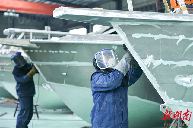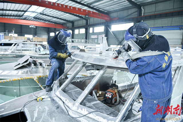 On December 16, workers were busy fulfilling ship orders at the workshop of a ship equipment engineering company in Loudi Economic and Technological Development Zone. As the year draws to a close, the company's workforce is intensifying efforts to fulfill orders and achieve annual production targets. Its luxury yachts are exported to European and American countries, demonstrating robust export strength. (Photo/Wu Yonghua)