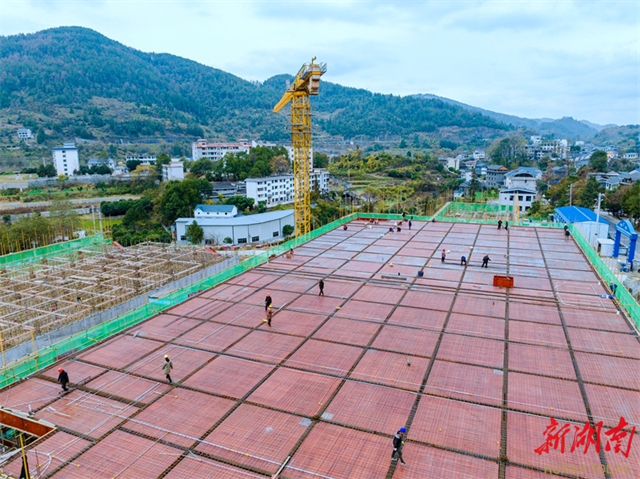 On December 21, workers stepped up constructing a characteristic agricultural product processing, warehousing, and logistics base in Xima Village, Majing'ao Town, Jishou City. In recent days, the construction unit has seized the favorable weather conditions to scientifically schedule the construction timeline, ensuring both smooth progress and safe construction. The project is scheduled for completion in August 2026. Upon operation, it will significantly enhance the commercial processing and supply chain capabilities for local characteristic agricultural products, effectively reduce post-harvest losses, and boost agricultural efficiency. (Photo/Peng Jing)