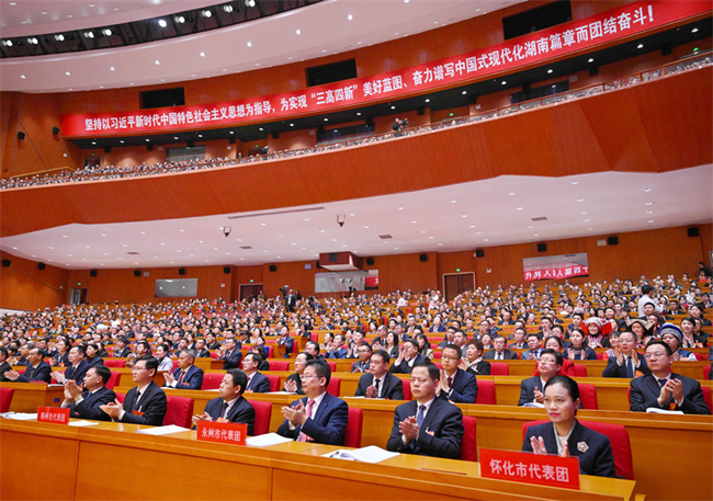 Deputies listen to the work report of the provincial government. (Photo/Tong Zhenxi, Hunan Daily)