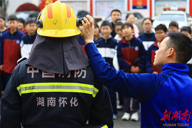 firefighters. That day marked China's national safety education day for middle and primary school students. The Daoxian County Fire and Rescue Brigade invited students from Daoxian County No. 4 Primary School to visit the fire station and participate in safety education activities, aiming to enhance their safety awareness and self-protection skills. (Photo/Jiang Keqing and Wen Tian)