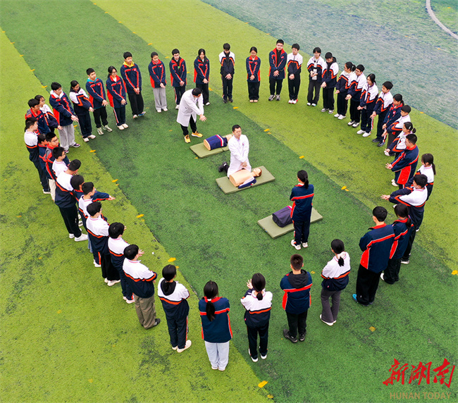 On March 30, medical staff guided students through CPR and other first aid drills. That day marked China's national safety education day for middle and primary school students. The Hengyang County Experimental School worked with the Hengyang County Maternal and Child Health Hospital to host a themed event. Medical staff taught students CPR, bandaging, and other first aid skills, and explained how to use fire extinguishers, thereby enhancing the students' safety awareness and emergency response capabilities. (Photo/Liu Xinrong)