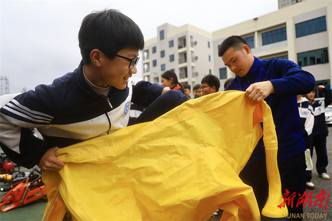 On March 30, students tried out firefighting equipment. That day marked China's national safety education day for middle and primary school students. The Dongsheng Middle School in Hecheng District, Huaihua City organized students to visit a fire station, where the students gained safety knowledge and experienced firefighting equipment firsthand, effectively enhancing both safety awareness and emergency response capabilities of faculties and students. (Photo/Chai Junlin)