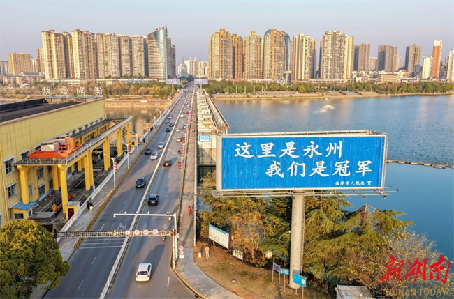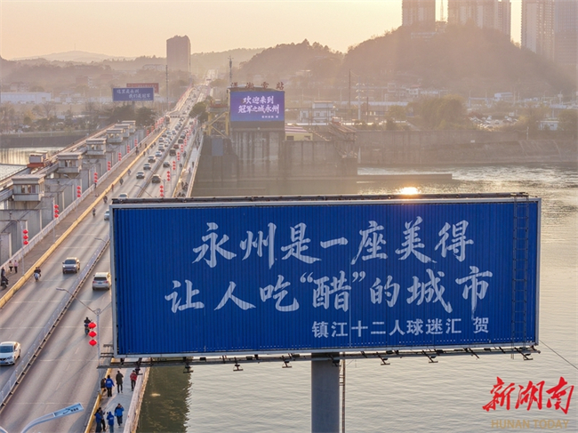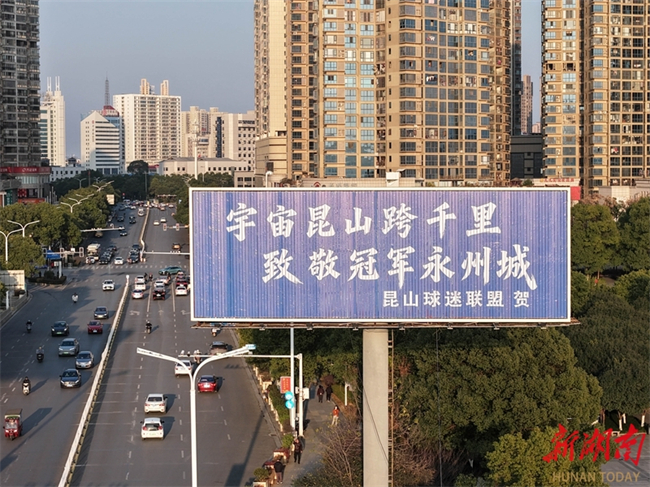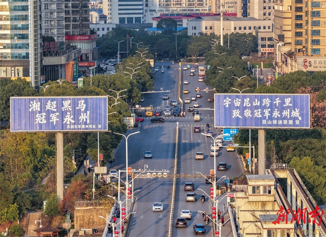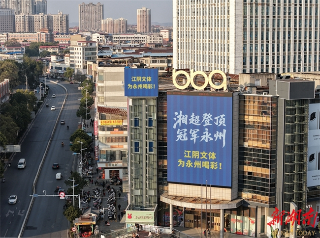 The photo shows congratulation messages from netizens in Jiangsu Province are showcased on the advertising boards and outdoor electronic screens in Yongzhou City. In recent days, the advertising boards and outdoor electronic screens across Yongzhou downtown areas have been filled with messages of congratulations from cities across Jiangsu Province, such as Nanjing, Suzhou, Taizhou, and Nantong, to celebrate the Yongzhou Football Team's victory in the 2025 Hunan Football League (HFL). This initiative has drawn widespread attention and praise online. (Photo/Guo Liliang, Hunan Daily)