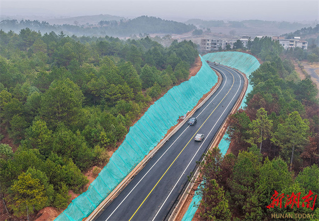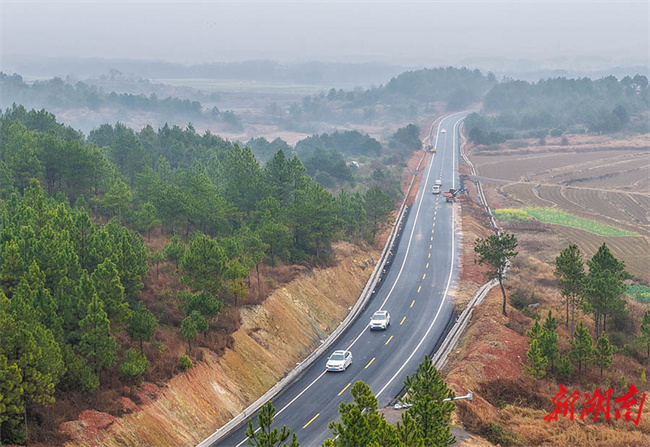 The photo, taken on February 9, shows vehicles traveling along the Gongba section of Shangtan Highway in Daoxian County. Recently, the 58-kilometer Shangtan Highway was fully completed and opened to traffic, serving as a vital transportation link connecting five townships and serving 200,000 residents, effectively promoting integrated urban-rural development. (Photo/Jiang Keqing)