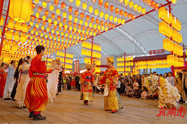 The photo, taken on February 11, shows visitors immersing themselves in a Han Dynasty-style temple fair at the lantern street in the Changsha Window on the World. Themed "Return to the Era of Lady Xin Zhui for a Temple Fair," the event blended Han Dynasty cultural elements with Hunan characteristics. It featured Han Dynasty-style performances, folk interactive activities, Hunan cuisine, a lantern show, and a Spring Festival parade, creating an immersive cultural experience for visitors. (Photo/Deng Ting)