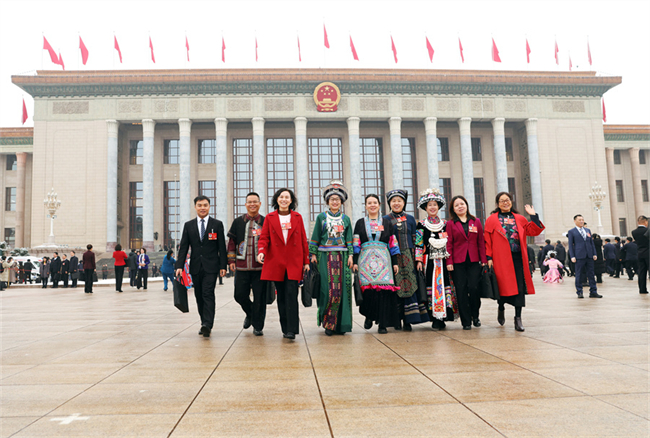 On the morning of March 5, the fourth session of the 14th National People's Congress (NPC) convened at the Great Hall of the People in Beijing. The photo above shows Hunan deputies walking out of the hall after the opening ceremony.