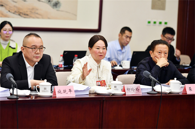 On March 5, Liu Lingling (C), a Hunan-based member of the CPPCC National Committee, spoke at a group discussion.
