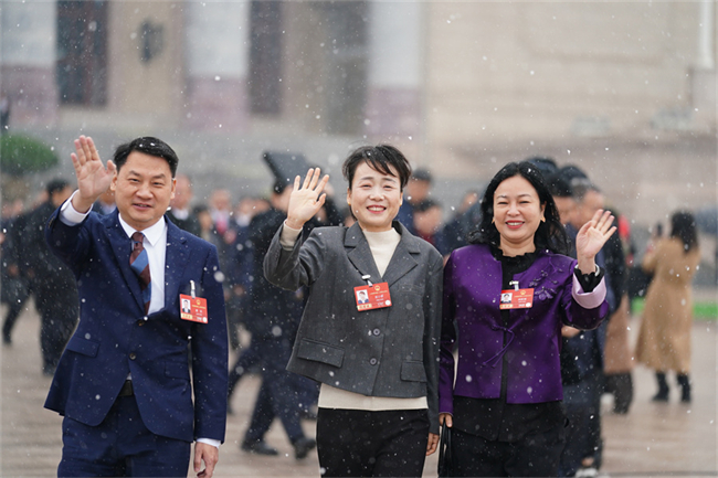 On the morning of March 4, snow flurries drifted through the air. After attending the preparatory meeting for the fourth session of the 14th NPC, the Hunan delegates left the venue in anticipation of the grand gathering.