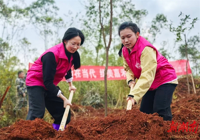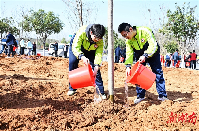 On March 11, the SINOPEC Hunan Company joins hands with Yueyang's Yunxi District to launch a voluntary tree-planting activity at the New Port section of Luchengyuan Embankment along the Yangtze River shoreline, aiming to enhance the beauty of the Yangtze riverbanks together. March 12 marks China's National Tree Planting Day. Voluntary tree-planting activities are being held across the province, to increase green coverage, boost ecological protection, and jointly build a beautiful homeland. (Photo/Peng Zhan and Li Yijun)